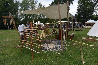 Quelques photos des arcs réalisés par les membres de la compagnie à différentes époques, ainsi que les photos de notre stand de facture d’arc et des présentoirs utilisés sur les campements médiévaux.